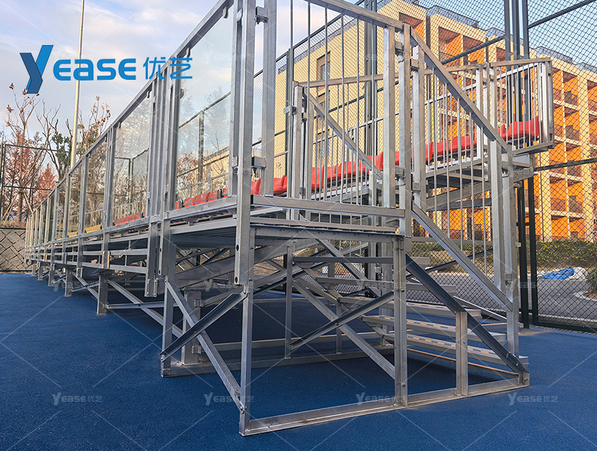 堅固耐用的鋼結(jié)構(gòu)看臺系統(tǒng),滿足戶外場館長期使用與高承載要求。